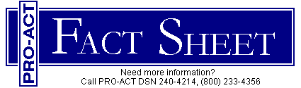 If your desire more information on the disposal of fluorescent light tubes and lamp ballasts, and HID lamps or on the Green Lights program, you can contact PRO-ACT at DSN 240-4214 or (800) 233-4356. Our fax number is DSN 240-4254.