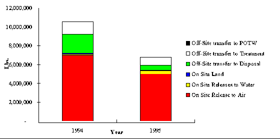 Figure 1: TRI Reportable Releases And Off-Site Transfers for 1994 and 1995