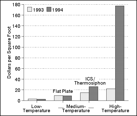 Note: See Table 13 for data values. Source: Energy Information Administration, Form CE-63A, "Annual Solar Thermal Collector Manufacturers Survey."