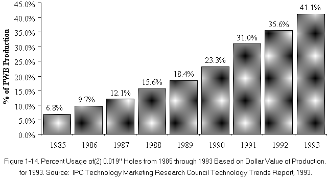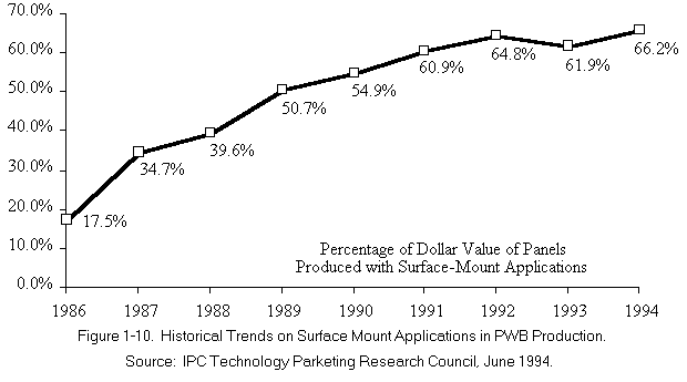 1-10 Historical Trends on Surface Mount Applications in PWB Production