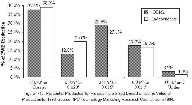 1-13 Percent of Production for Various Hole Sizes Based on Dollar Value of Production for 1993