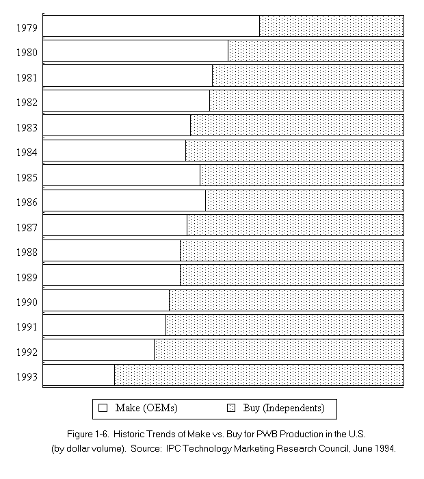 1-6 Historic Trends of Make vs. Buy for PWB Production in the U.S.
