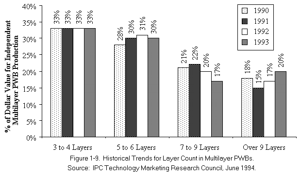 1-9 Historical Trends for Layer Count in Multilayer PWBs