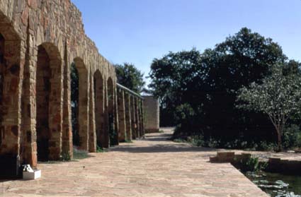 The National Wildflower Research Center, founded by Lady Bird Johnson, finds rainwater best for irrigation. The most prominent feature of the center is the 10,000-gallon limestone-and-mortar tower cistern. Roof catchment areas of more than 20,000 square feet feed into three cisterns and two storage tanks with a capacity of 70,000 gallons. A network of aqueducts transports rainwater to storage.